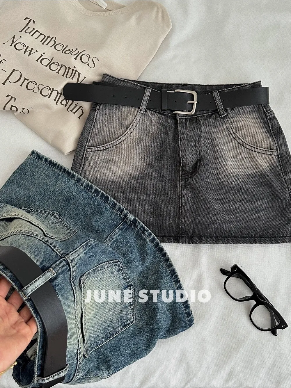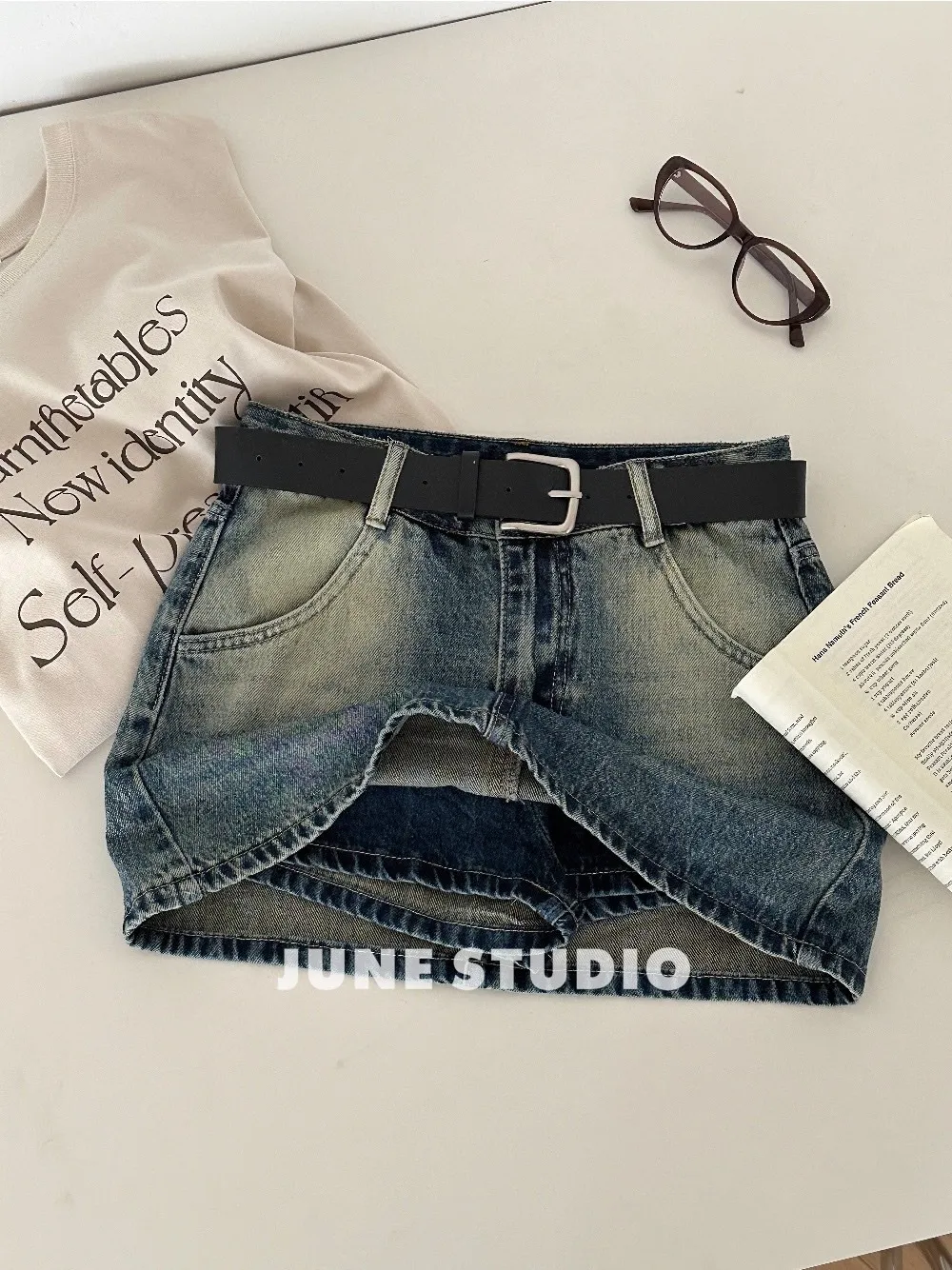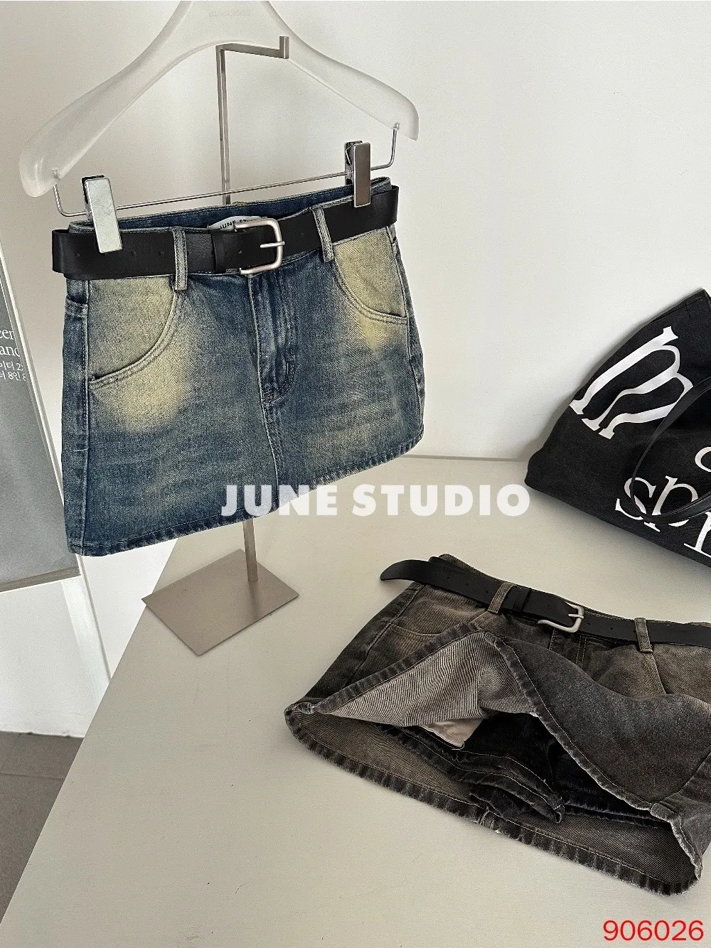 辣妹必備附皮帶牛仔裙