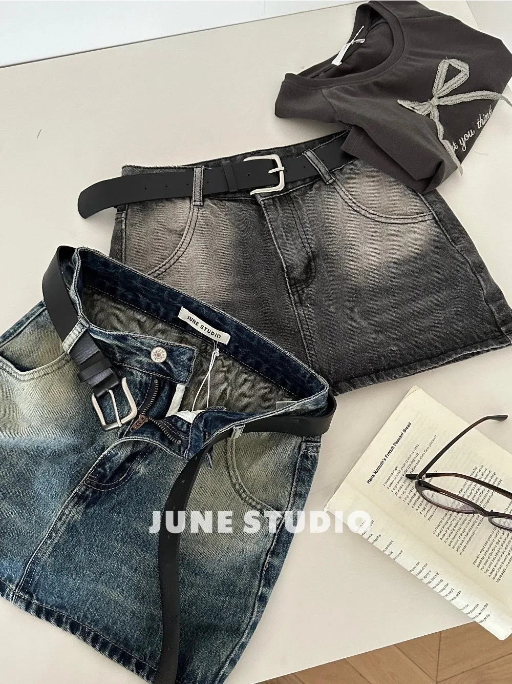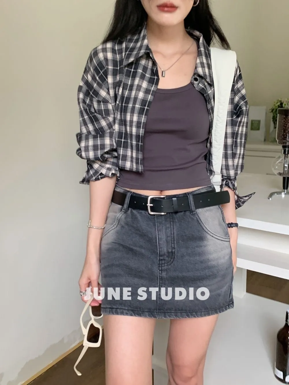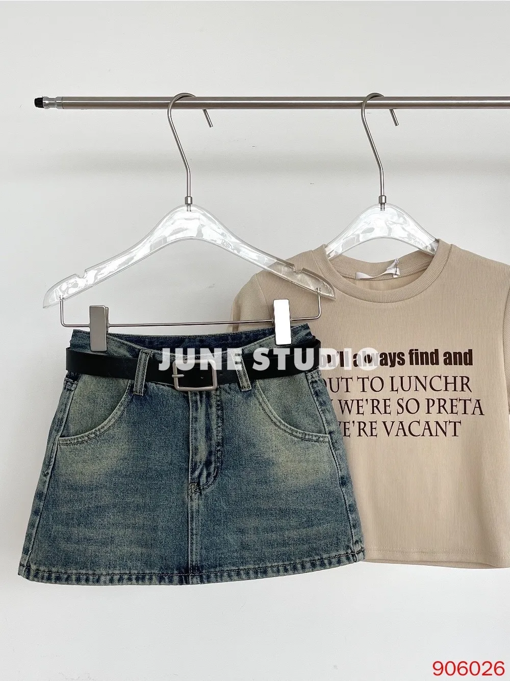 辣妹必備附皮帶牛仔裙