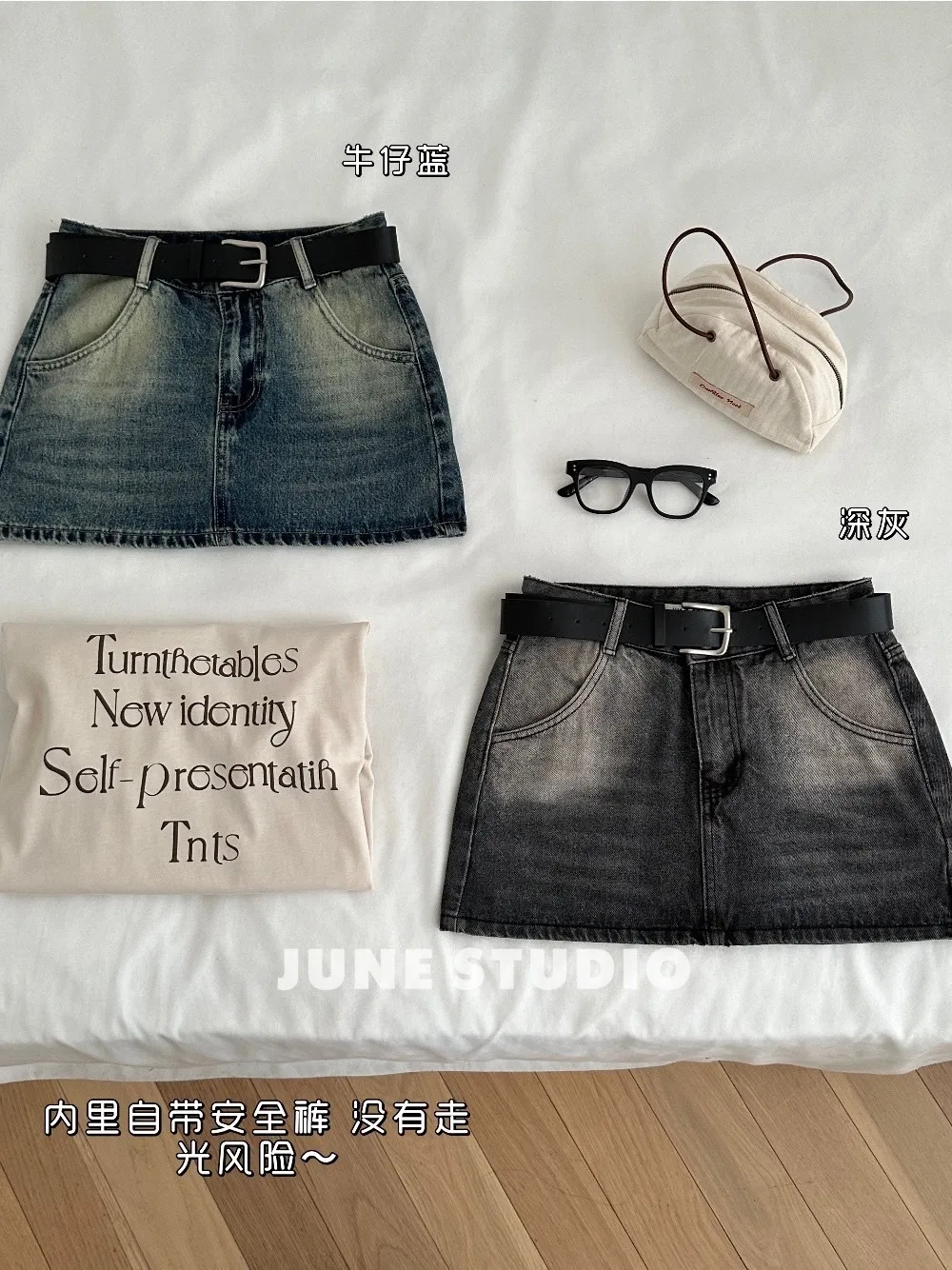 辣妹必備附皮帶牛仔裙 :沒彈性